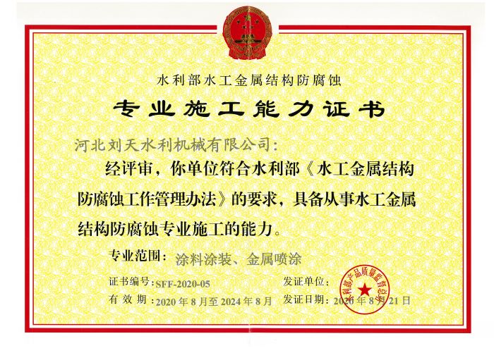 水工金屬結(jié)構(gòu)證書